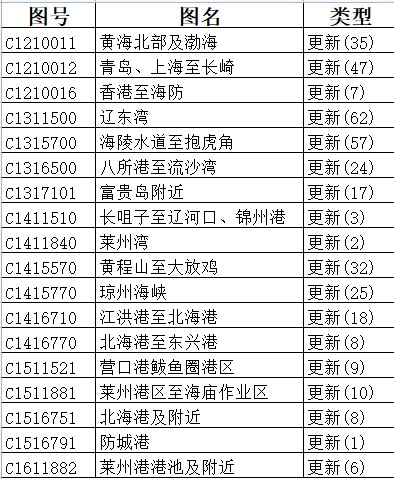 2022年09月15日星期四(2022年第37周),中国海军海道测量局海图数据变化如下: