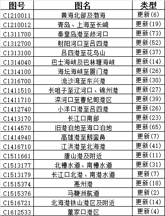 2025年11月28日 星期五(2025年第47周),中国海军海道测量局海图数据变化: