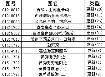 2025年12月5日 星期五(2025年第48周),中国海军海道测量局海图数据变化: